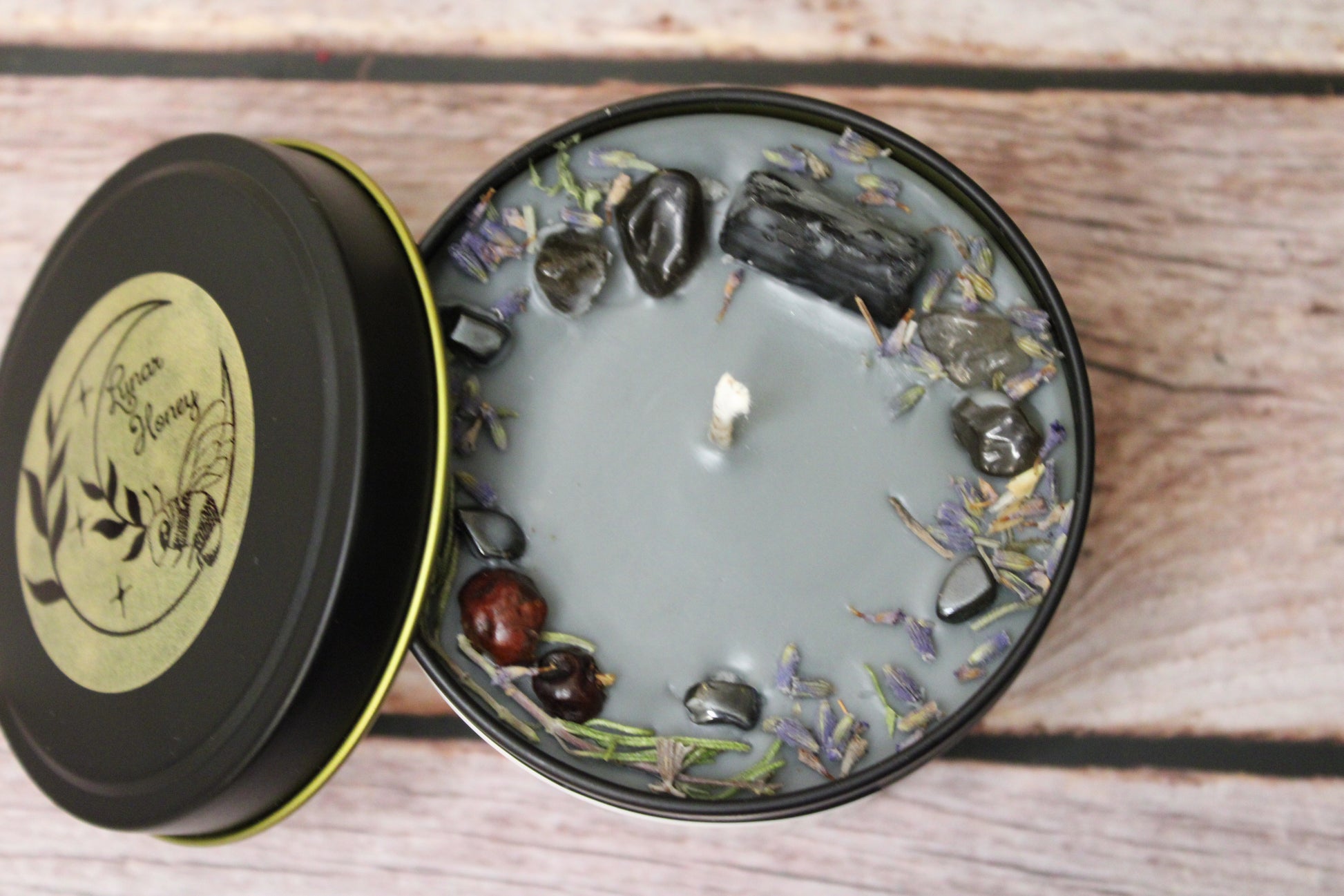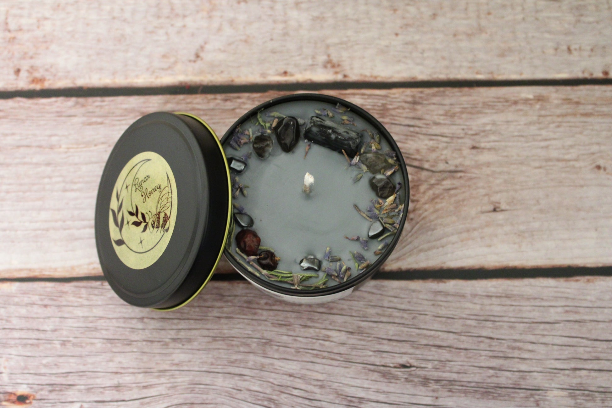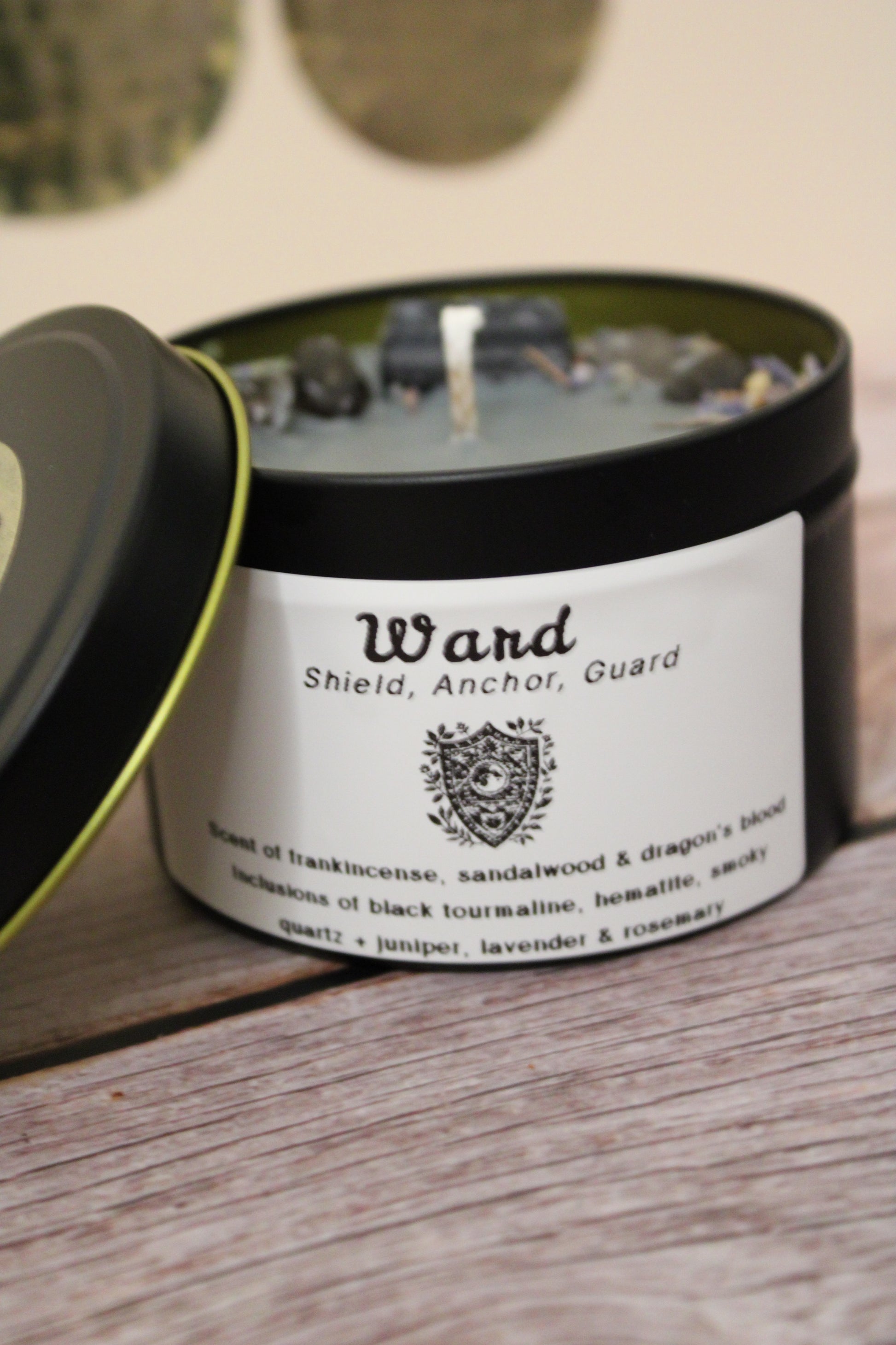 *For best safety practices and candle performance, please remove inclusions once loosened by the burn pool and rephrase them for your protection or grounding ritual work.